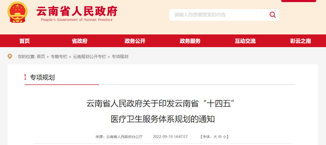 近日,云南省人民政府印發(fā)了《云南省“十四五”醫(yī)療衛(wèi)生服務(wù)體系規(guī)劃》(以下簡(jiǎn)稱《規(guī)劃》)。