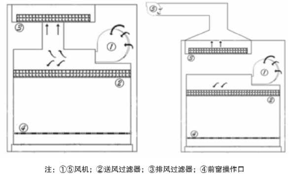 Ⅱ級(jí) A2型(左)及 B2型(右)生物安全柜設(shè)計(jì)結(jié)構(gòu)