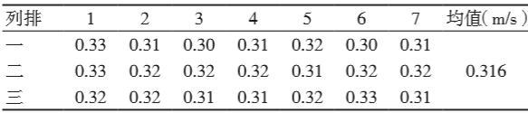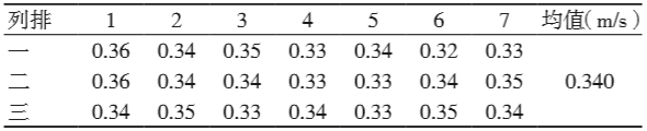 表2 拆除外排管道時(shí)的下降氣流流速的檢測(cè)數(shù)據(jù)
