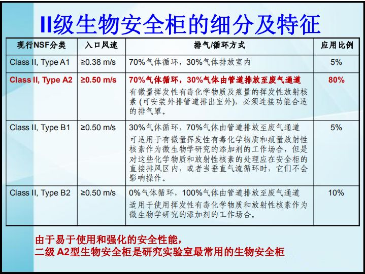 目前,二級(jí)生物安全柜按排放氣流占系統(tǒng)總流量的比例及內(nèi)部設(shè)計(jì)結(jié)果分為A1、A2、B1、B2。