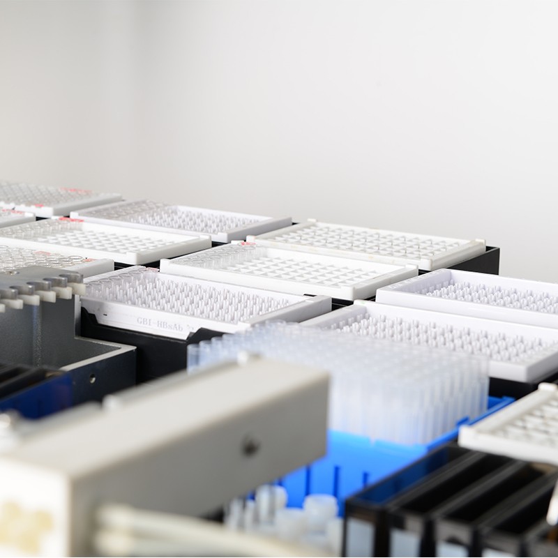 一、全自動(dòng)完成ELISA實(shí)驗(yàn),包括標(biāo)本分配、試劑加注、振蕩、孵育、洗板、讀數(shù)。