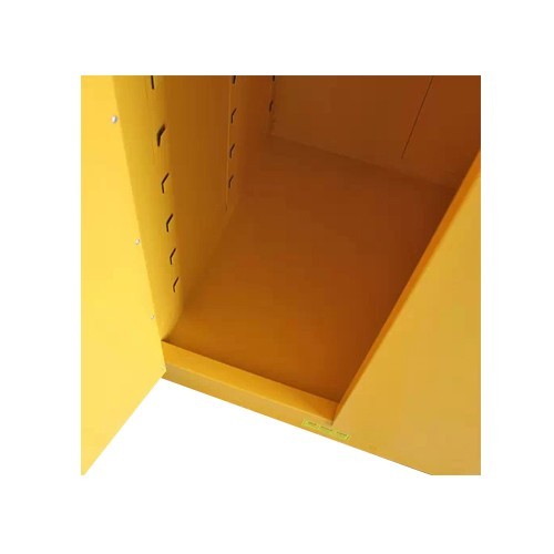 安全存儲柜系類有黃(黃色指示易燃物品)、紅(紅色指示可燃物品)、藍(lán)(藍(lán)色指示弱腐蝕性物品)三種顏色,三種顏色的尺寸相同,儲放危險品類型不同。