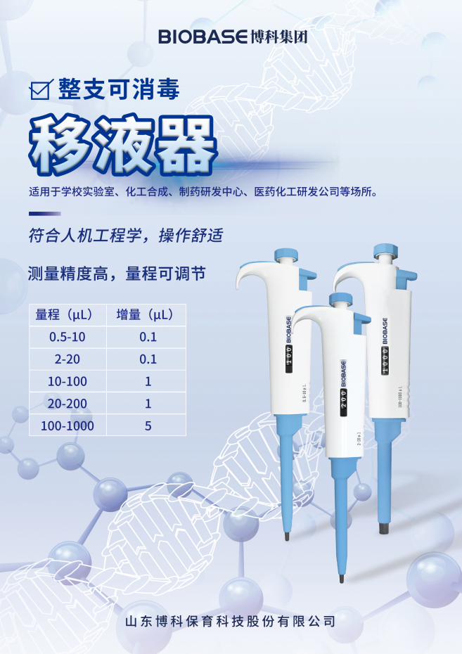 當(dāng)前位置 > 首頁 > 產(chǎn)品中心  > 樣品前處理 > 移液器> 博科/BIOBASE整支消毒單道可調(diào)移液器10-100μl_移液器校準(zhǔn)