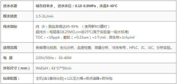 出水量:10-30L/H 出水水質(zhì):一級超純水 進水水源:自來水