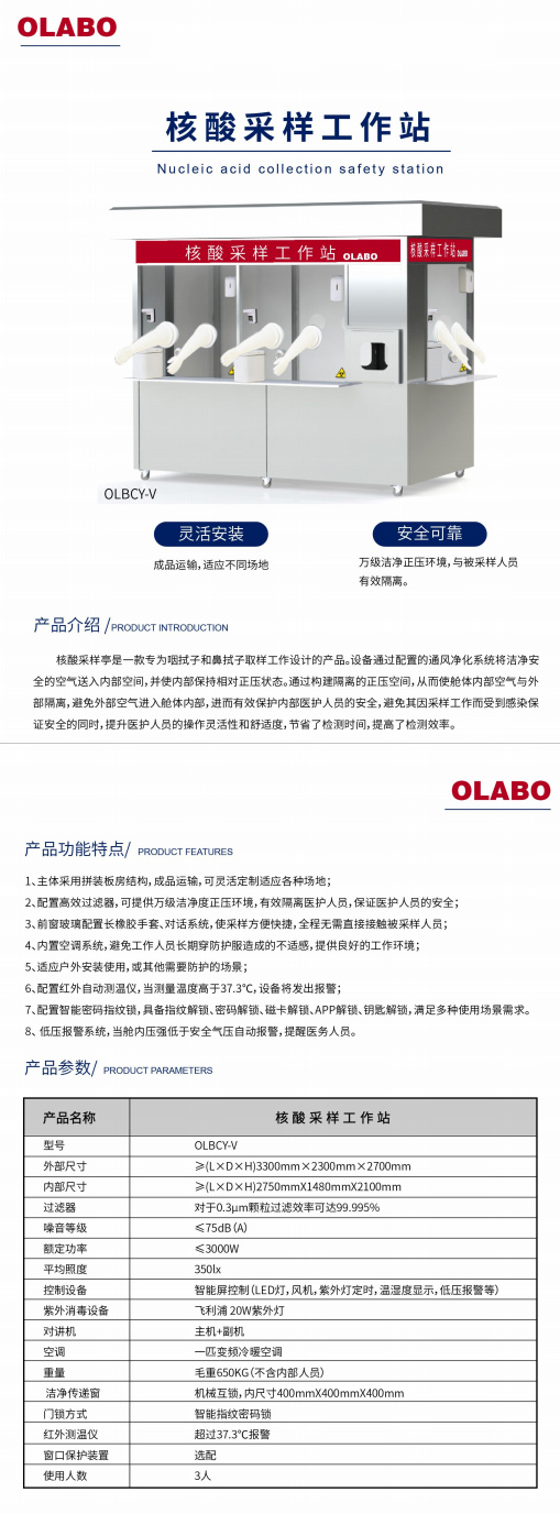 三人核酸采樣工作站技術(shù)參數(shù):