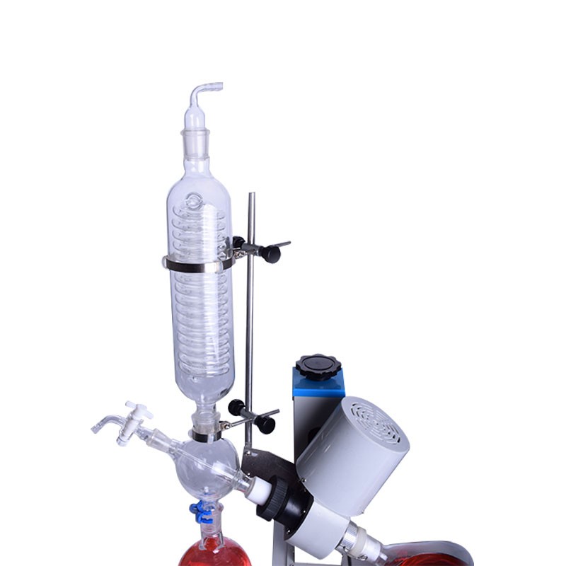 旋轉(zhuǎn)蒸發(fā)器與物料接觸部分全部采用高硼硅玻璃(膨脹系數(shù)3.3)和聚四氟乙烯材料,性能穩(wěn)定不易與物料起化學(xué)反應(yīng)。