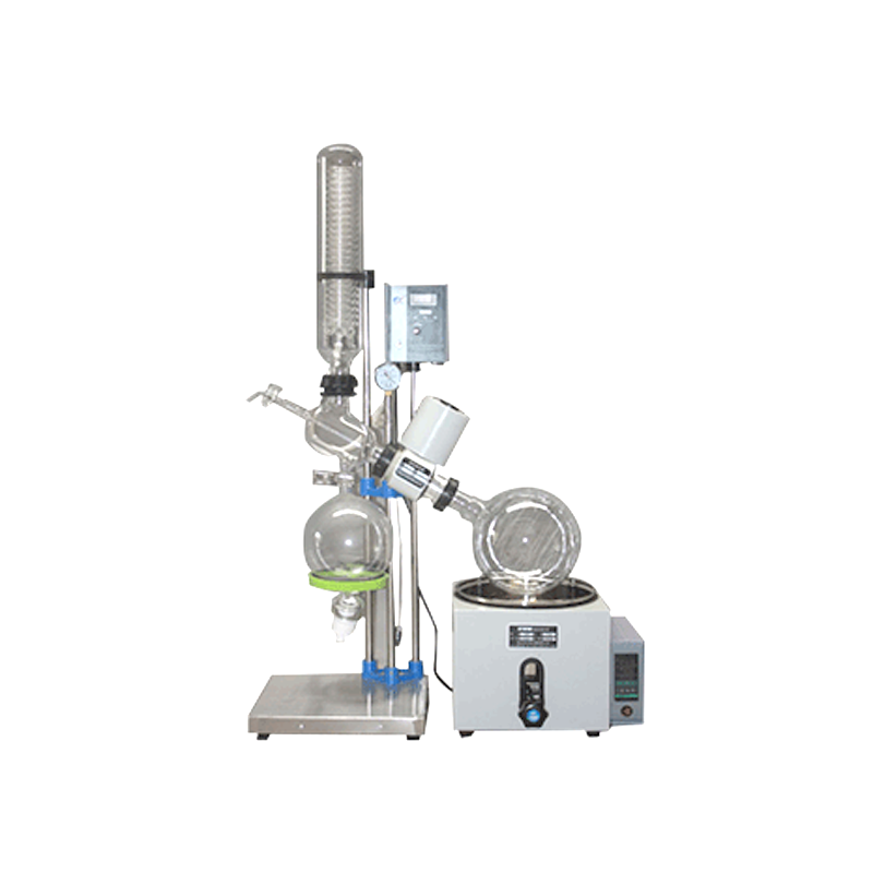 蒸發(fā)瓶恒速旋轉,水浴鍋恒溫加熱,在此條件下:物料在蒸發(fā)瓶內壁形成大面積均勻薄膜快速蒸發(fā),在真空條件下可以提高蒸發(fā)效率(需連接真空裝置),溶媒蒸汽經(jīng)玻璃冷凝盤管時冷卻成液體(需連接冷卻裝置),回收于收集瓶。